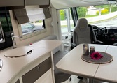 The seating area is a Smart Lounge type, featuring two facing benches that can be converted into forward-facing seats with 3-point seat belts. This provides a spacious and comfortable seating area for passengers. If no passengers are present, the benches can remain as shown in the pictures.The heating system is a Truma Diesel, heating both air and water using either diesel (6000W) or 230V (2000W). These energy sources can be combined to reduce diesel consumption.