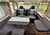 Additional drop-down bed at the front. Truma Combi for heating and hot water, powered by either gas or electricity.