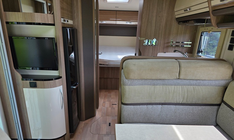 VAT incl.This is a fantastic motorhome featuring a large double bed at the rear. Below the double bed is a storage compartment with access hatches on both sides for maximum convenience.