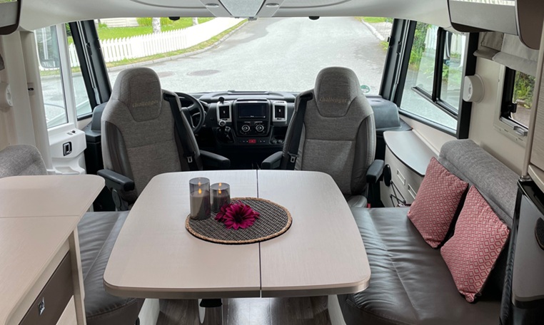 The seating area is a Smart Lounge type, featuring two facing benches that can be converted into forward-facing seats with 3-point seat belts. This provides a spacious and comfortable seating area for passengers. If no passengers are present, the benches can remain as shown in the pictures.The heating system is a Truma Diesel, heating both air and water using either diesel (6000W) or 230V (2000W). These energy sources can be combined to reduce diesel consumption.