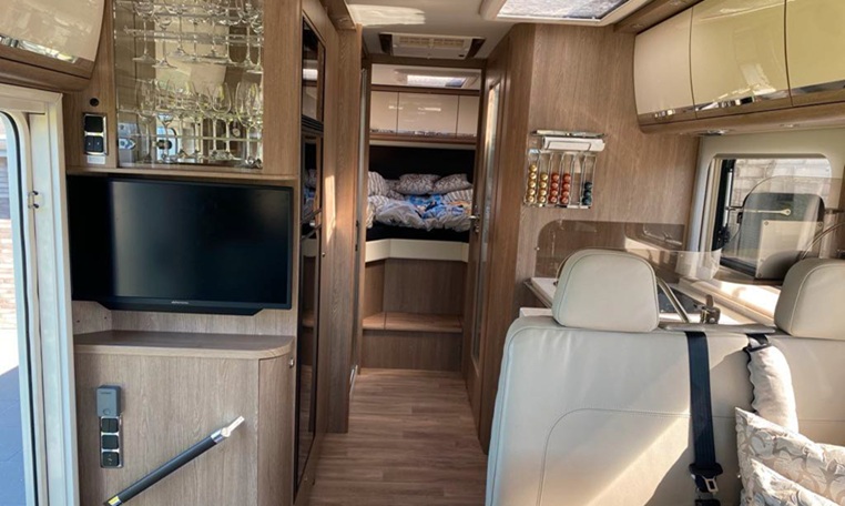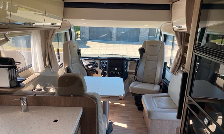 3000W inverter, full birdview with a 10" Beetronic screen, hydraulic support legs, Thule electric awning, dishwasher, washing machine, central vacuum cleaner, coffee machine, defrosting camera with dedicated screen, Webasto diesel heater, LED lighting on both sides of the vehicle activated from the cab (makes reversing with birdview easier in the dark), 189L refrigerator, combi oven, DUO gas control, gas alarm, detachable steering wheel.