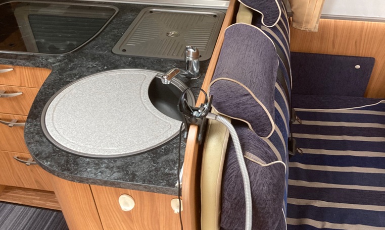 Included Equipment: All equipment visible in the pictures are included. This includes a complete set of dishes, cutlery, glasses, and cups, all cooking equipment, a French press and coffee maker, hand mixer, and additional kitchen utensils. Also included are two adjustable chairs with cushions, a foldable table, a mat for under the awning, and a windbreak. 6 kg fire extinguisher located in the storage compartment. Cable reel. Leveling blocks.