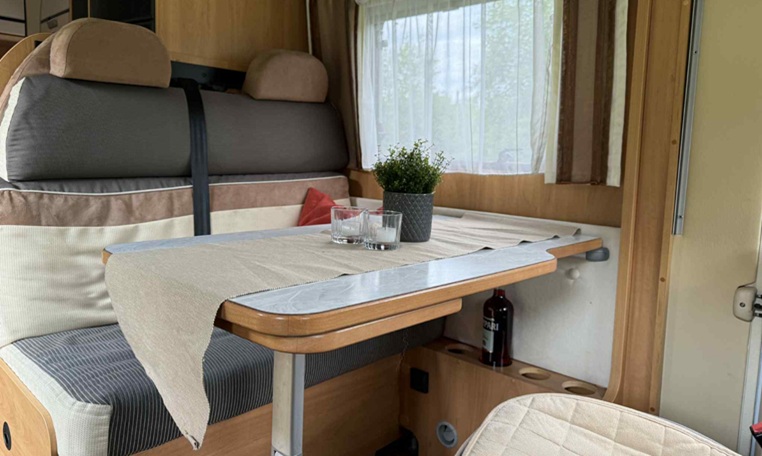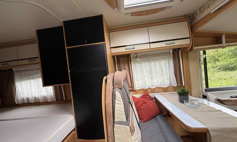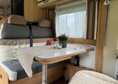 Specifications: Solar panel, DAB radio, Drop-down bed, Air conditioning in the driver’s cabin, Truma heating (220V and gas), Awning, Shower cabin, Refrigerator, Freezer, Fixed toilet, Reversing camera, Swiveling captain's chairs.