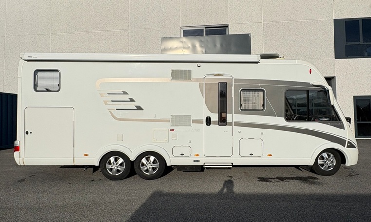 The 2013 Hymer B778 SL is a luxurious A-class integrated motorhome, built on a Fiat Ducato AL-KO maxi chassis with a tandem axle for enhanced stability and load capacity.