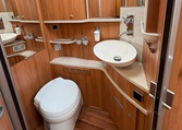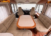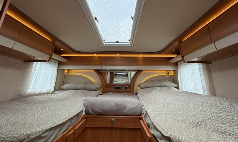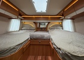 This is a fully integrated quality motorhome with ALDE waterborne heating, a large bedroom, front drop-down bed, and a well-designed solution for year-round use and long trips.