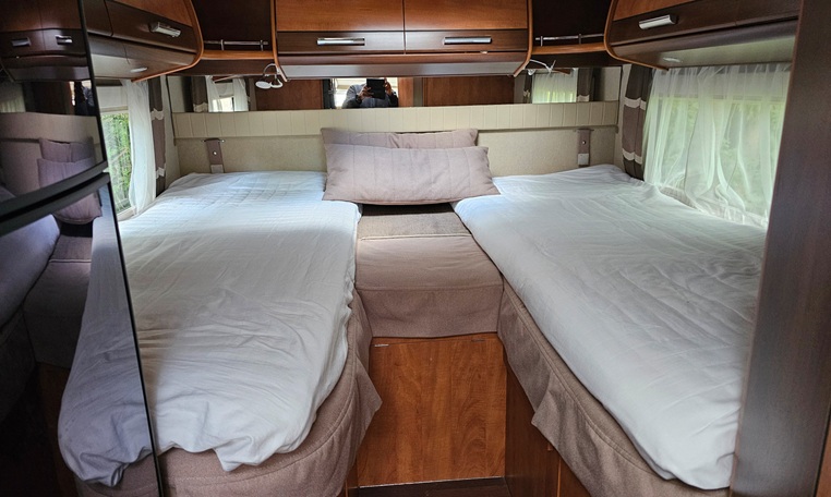 Interior and LayoutSingle beds in the bedroom that can be converted into a large double bed. Stylish, new leather upholstery for the cab seats.