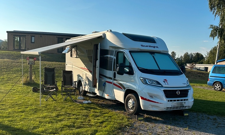VAT incl.Sunlight T68 with Single Beds and Drop-Down BedThis motorhome is in excellent condition and comes with equipment beyond the standard. Timing belt and water pump replaced in autumn 2024. Oil, oil filter, diesel filter, and all other filters replaced in spring 2025. Moisture test conducted in may 2025. Roof-mounted solar panel. A Kampa Motor Rally Air 330 with sleep annexe included.